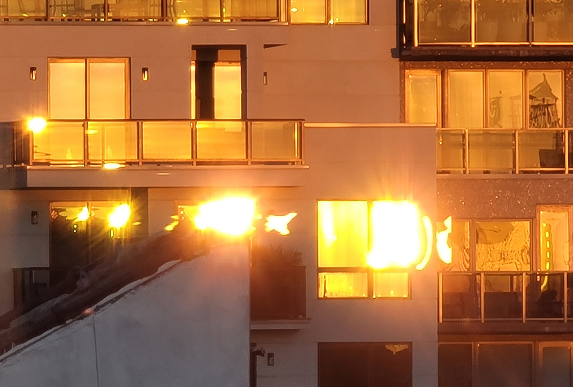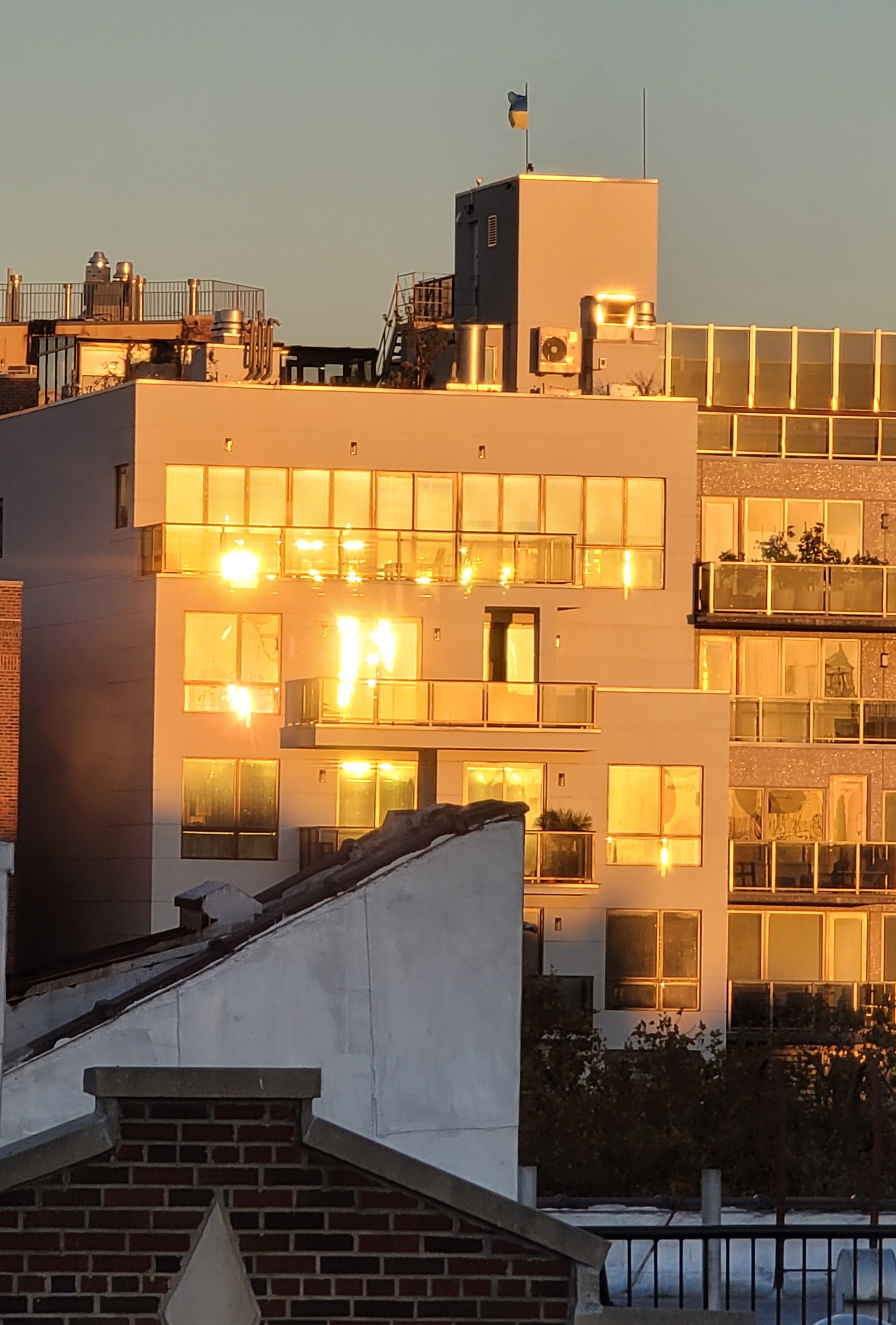 I took a few pics as the sun's reflection moved across the building on 3rd.