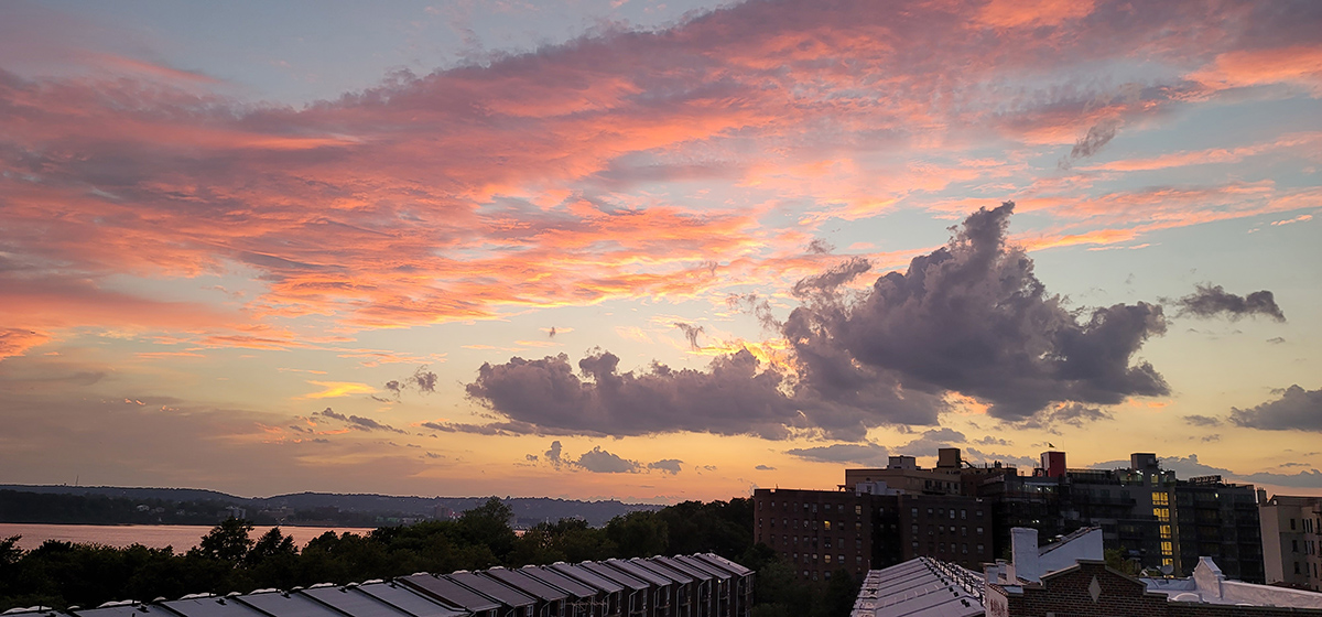 What caught my attention was the way the pink-purple clouds were drifting southwest towards the Verrazano Bridge - along the way crossing paths with the dark clouds moving north towards Manhattan. I had never seen clouds move in opposite directions like that.