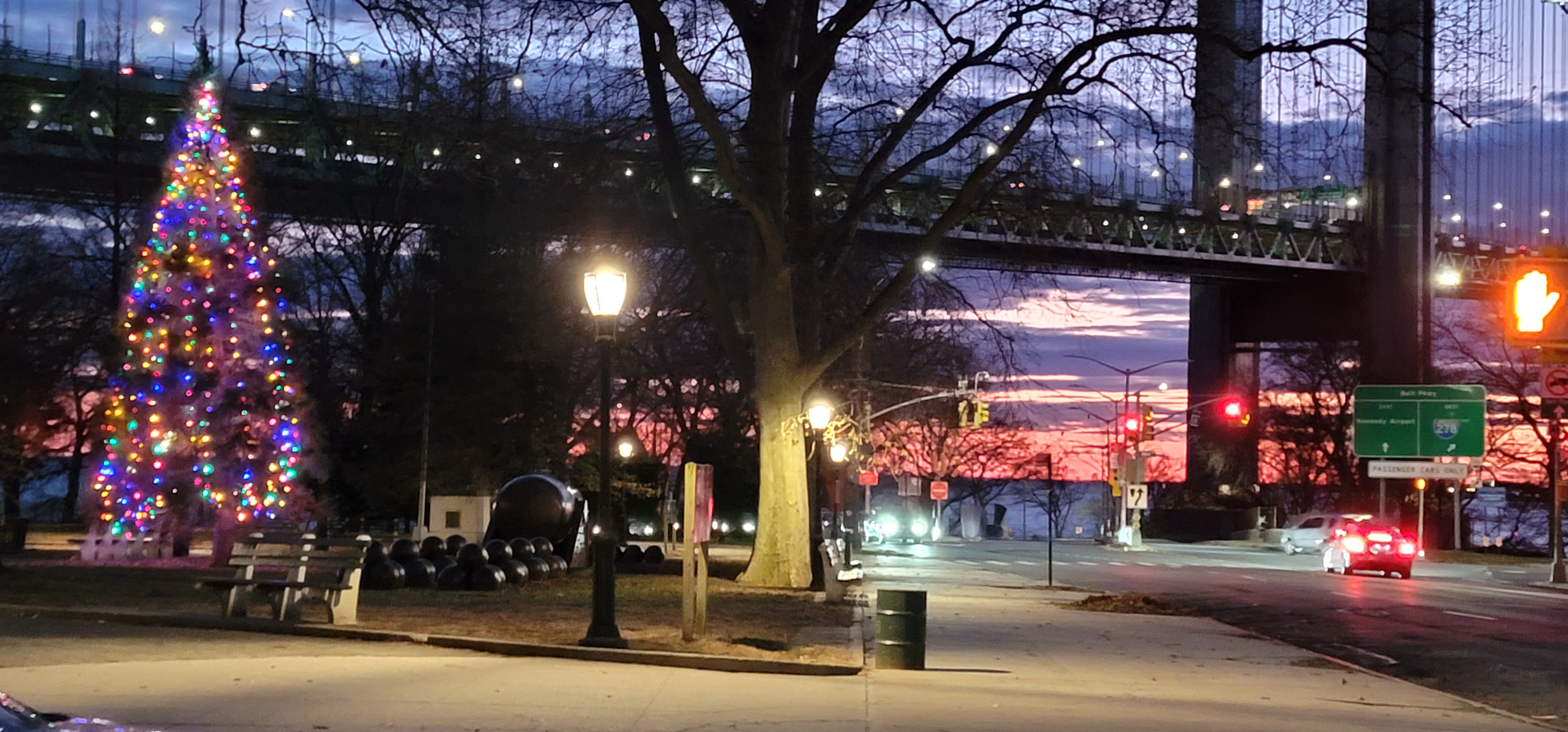 I walked to the park to take this captivating pic of 'my' Christmas Tree and the setting sun as we approach the end of 2024. I didn't notice the hand on the right signifying "Stop" until I posted the pic. It's always fun to look for messages. All of the those lights and colors blended magically together. Happy New Year.