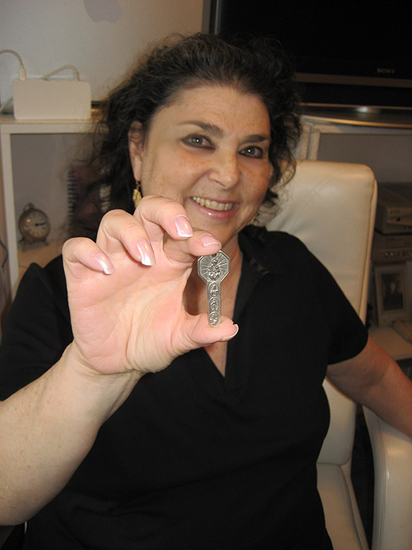 The clients used my camera to take a few pictures to post here. What is so interesting is the key is silver in most lights, with a bronze edge, but when you look at it, in the Wikipedia image, it appears gold, as in alchemy. Yes, I know it is the light reflecting, yet a truth is being shown to me.