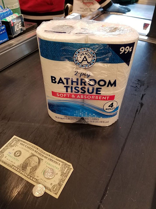 Needing necessities, I drove to one of the two local supermarkets getting a spot in front as the smaller store has no parking lot (remember this is Brooklyn). Once inside I picked up a few things then got on line to check out. The line wasn't long - the people friendly - most wearing masks and gloves while trying to social distance. As I reached the cashier I noticed lots of toilet paper near the entrance which I must've missed on my way in because it was not on my radar or shopping list. I really didn't need toilet paper but couldn't resist this cute little package costing $.99 plus tax (8.875%). Each roll is about 1/4 of the size of Charmin, but they could come in handy one day or maybe just become a souvenir from the great toilet paper pandemic.