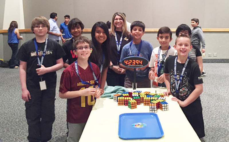 Students at Chaparral Elementary School in the Higley Unified School District have mastered the task of solving one of life's most challenging puzzles and hope to put that skill on display this spring when they compete in the Arizona SciTech Festival's Rubik's Cube Regional Competition on March 28, 2015.