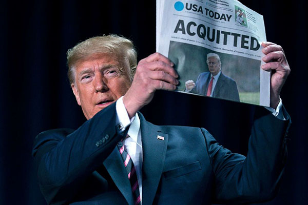 The final vote was 52-48 on the abuse of power article and 53-47 on the obstruction of Congress charge. It would have taken a supermajority, or 67 Senate votes, to convict him. Many people are running scared especially after the Iowa Democratic fiasco. Now it's up to voters to hold Trump accountable. This will also be reflected in the number of Republicans elected to office in November.