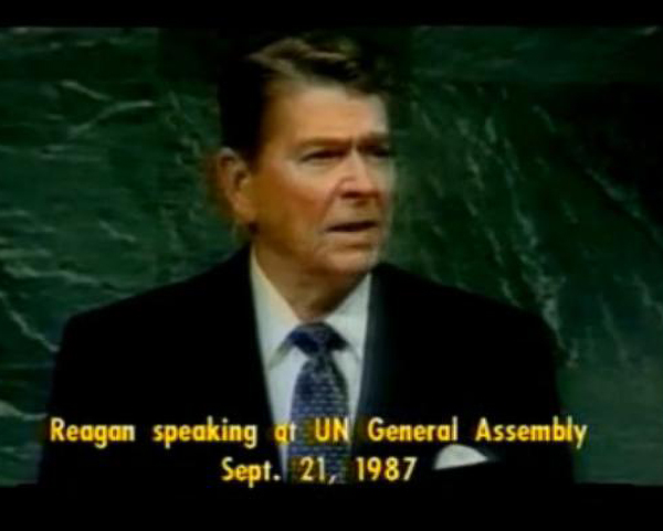 On Sept. 21, 1987, then-U.S. President Ronald Reagan gave an address to the United Nations General Assembly. In an often-quoted section of his speech, Reagan said, "Occasionally I think how quickly our differences worldwide would vanish if we were facing an alien threat from outside this world. And yet, I ask you, is not an alien force already among us? What could be more alien to the universal aspirations of our peoples than war and the threat of war?"