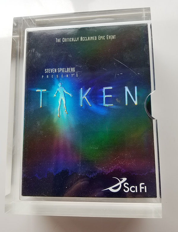 December 2002 brought the TV miniseries Steven Spielberg Presents Taken. At the time my daughter Nikki was working for the Syfy Network and surprised me with the DVD's in a lucite case. To this day I still watch Taken. You can buy the DVD set from Amazon but not in the lucite case which I believe was only available to those in the industry.