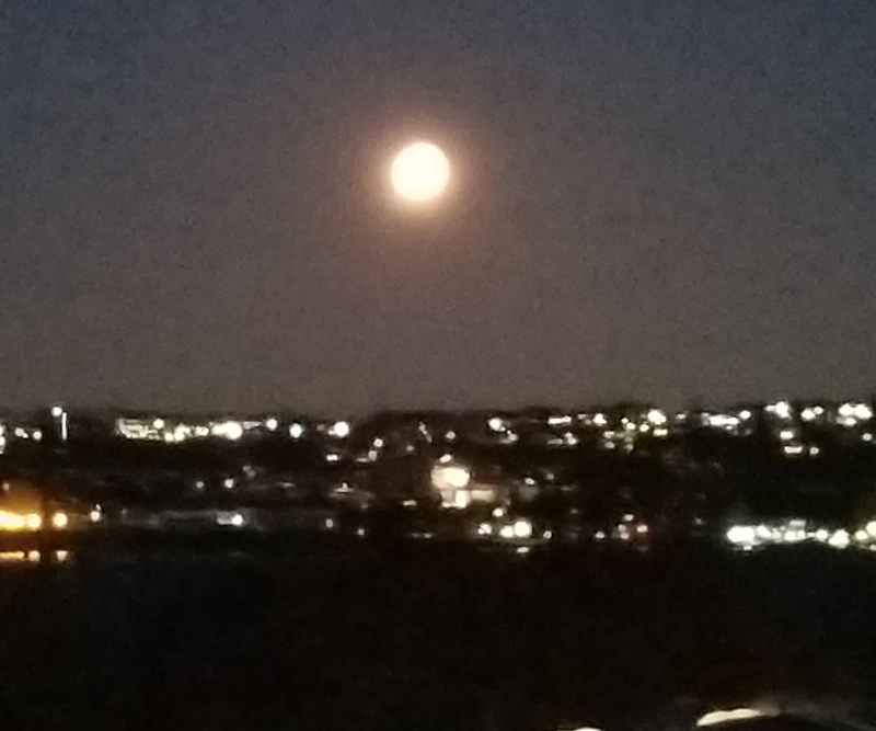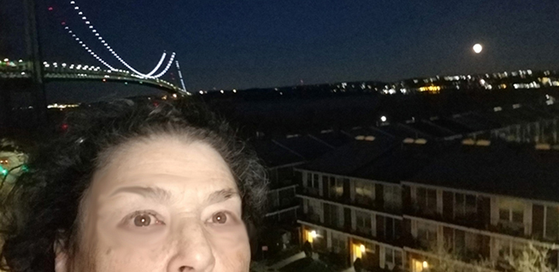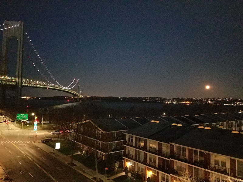 What a way to wake up. I stepped out on the terrace to take a pic of the bright orange Super Full Moon ... and whoops I was still sleepy so accidentally took a selfie. I decided to post it along with the two other pics of the Full Moon and the Verrazano Bridge.