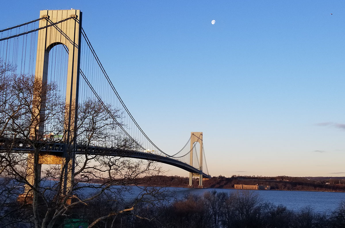 The waning moon over the Verrazano Bridge this morning is inspirational.