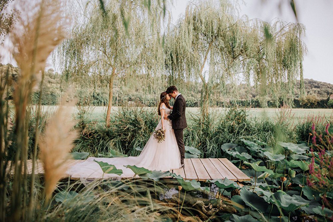 The bride told me she made her bouquet from fresh flowers picked nearby, then threw it in the river after the ceremony as friends and family cheered and sent messages of love.