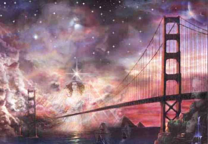 Fireworks to my right - the moon (feminine energies) and the Spiral of Creation to my left - the color purple set against a backwash of blue and gold (colors of my story Sarah and Alexander) - complete the simulated image.