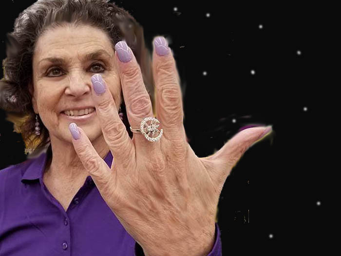 My ring has a central star and spinning crescent moons. My mother never spoke to me about the sky, as far as I recall, but on clear summer nights we'd walk down the street to the Coney Island Boardwalk and watch the sky - highlighted on Tuesday's nights with fireworks. Later, when I was 11 my mother brought me to the Nevada Desert where I was "Taken". ~ Ellie Crystal