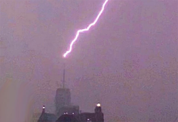Video: Storm Henri: Lightning strikes One World Trade Center.