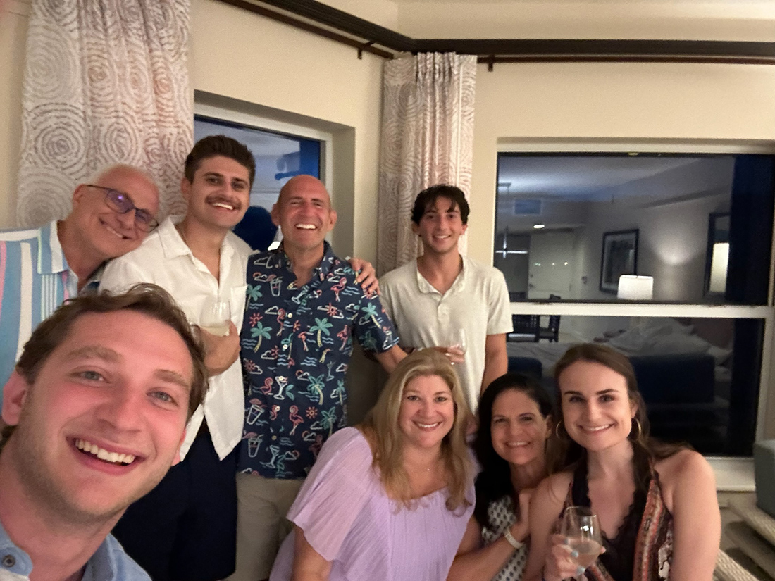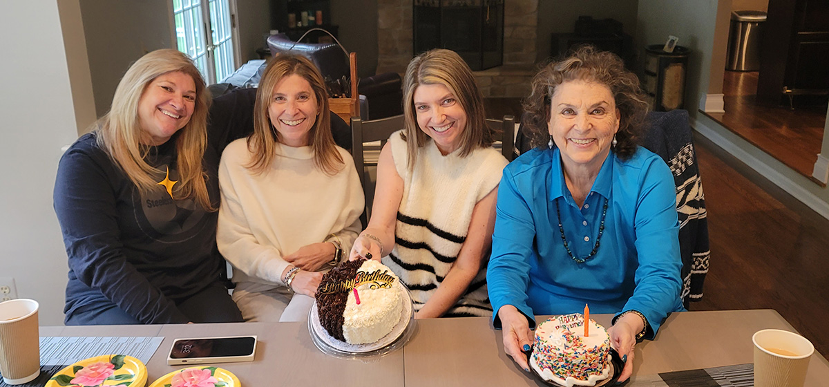 Zsia with family and friends celebrating her birthday. Both Zsia and her friend Mary are corporate professionals who work with leadership groups to help women in business.