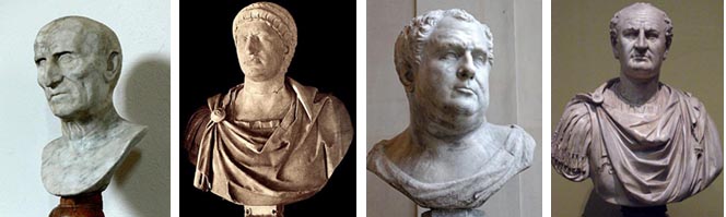 Aulus Vitellius Germanicus (September 24 AD 15 - December 22, 69) was Roman Emperor for eight months, from 16 April to 22 December 69. Vitellius was acclaimed Emperor following the quick succession of the previous emperors Galba and Otho, in a year of civil war known as the Year of the Four Emperors.