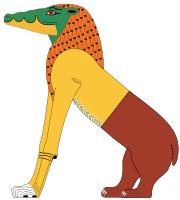 In myth Ammit was not worshipped, and she was never regarded as a goddess. Instead, she embodied all that the Egyptians feared, threatening to bind them to eternal restlessness if they did not follow the principle of Ma'at. Thus Ammit was depicted with the head of a crocodile or dog, the front part of her body as a lioness or leopard, and her hind quarters in the form of a hippopotamus, a combination of those animals which were considered as the most dangerous to the Ancient Egyptians. Although often referred to as a demon, by destroying evil she acted as a force for good.