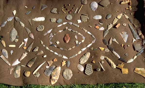 Artifacts found in the Wilcox collection include a wide array of bone needles, stone awls, bone and shell beads, projectile points, knives, scrapers and other stone tools from an interesting variety of cherts -- obsidian, pink agate and what resembled Llano Estacado alibate.