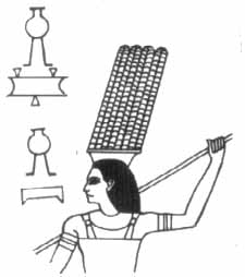 In early Egyptian mythology, Anhur (also spelled Onuris, Onouris, An-Her, Anhuret, Han-Her, Inhert) was originally a foreign god of war, who started being worshipped in the Egyptian area of Abydos, and particularly in Thinis, during the 11th dynasty. Myths told that he had brought his wife, Menhit, who was his female counterpart, from Nubia, and his name reflects this - it means (one who) leads back the distant one.