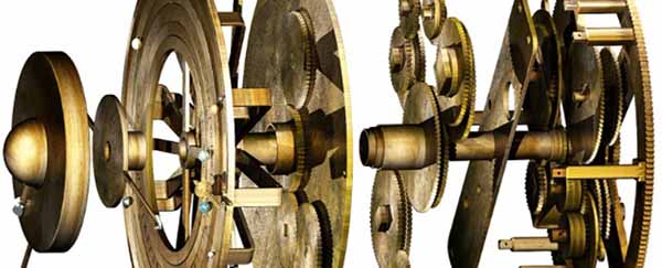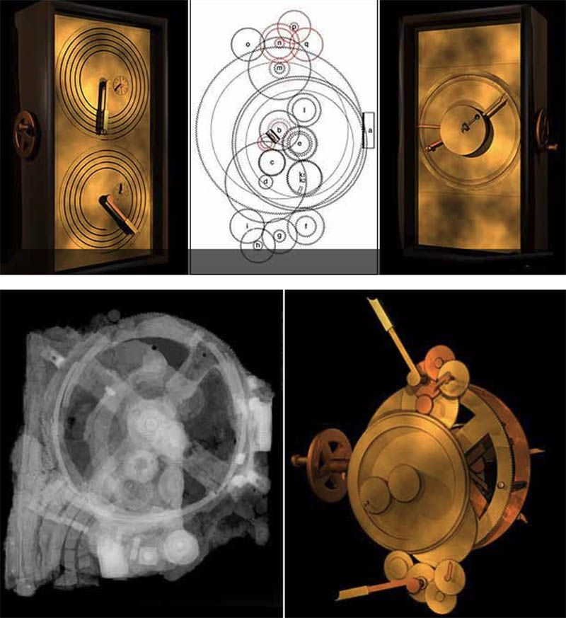 It is a complex clockwork mechanism composed of at least 30 meshing bronze gears. In 2008, a team led by Mike Edmunds and Tony Freeth at Cardiff University used modern computer x-ray tomography and high resolution surface scanning to image inside fragments of the crust-encased Mechanism and read the faintest inscriptions that once covered the outer casing of the machine.