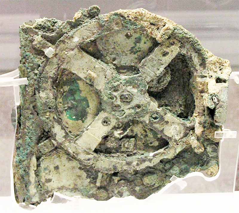 The Antikythera Mechanism is believed to be an ancient mechanical analog computer (as opposed to most computers today which are digital computers) designed to calculate astronomical positions. It was discovered in the Antikythera wreck off the Greek island of Antikythera, between Kythera and Crete, and has been dated to about 150-100 BC. It is especially notable for being a technological artifact with no known predecessor or successor; other machines using technology of such complexity would not appear until the 18th century.