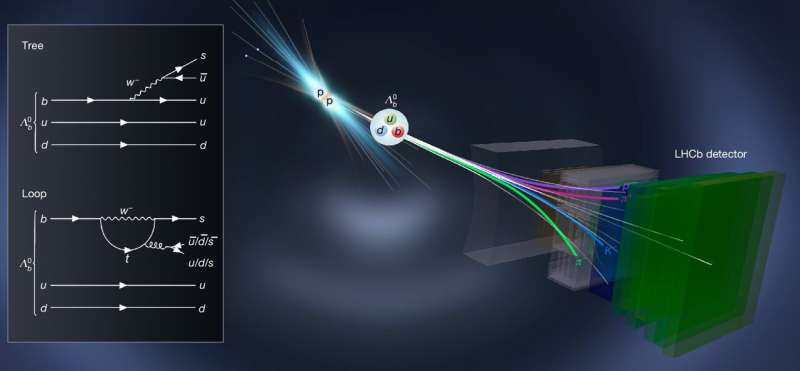 The first-known observations of matterÐantimatter asymmetry in a decaying composite subatomic particle that belongs to the baryon class are reported from the LHCb experiment located at the Large Hadron Collider at CERN. This effect, known as chargeÐparity (CP) violation, has been theoretically predicted, but hitherto escaped observation in baryons. The experimental verification of this asymmetry violation in baryons, published in Nature this week, is important as baryons make up most of the matter in the observable universe.