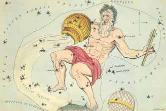 Aquarius is often depicted, even on very early Babylonian stones, as a man or boy, carrying a jar, bucket, or urn, the contents of which he is pouring out, with an appropriate towel in the left hand. The human figure sometimes omitted the stream of water from this jar flows into the mouth of Pisces Austrinus, the Southern Fish.