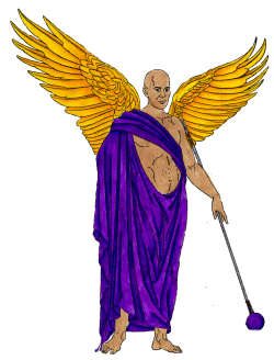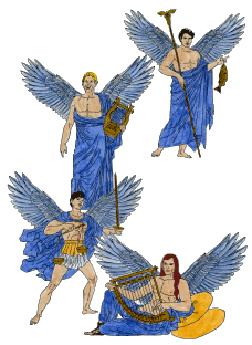 Raziel, whose name means 'Secrets of the Lord", is an archangel within the teachings of Jewish mysticism, of the Kabbalah of Judaism, who is the "Keeper of Secrets" and the "Angel of Mysteries." In some teachings he is claimed to be a Cherub, as well as the chief of the Ophanim and is described as having blue wings, a glowing yellow aura around his head and wearing a grey robe which appears to have liquid-like properties.