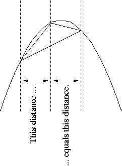 If the first term in this series is the area of the triangle in the illustration then the second is the sum of the areas of two triangles whose bases are the two smaller secant lines in the illustration, and so on. This proof is a variation of the infinite series 1/4 + 1/16 + 1/64 + 1/256 + á á á which sums to 1/3.