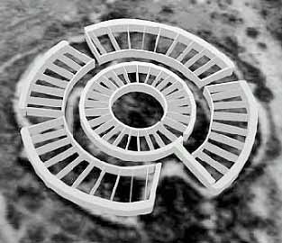 The obvious complexity of the social order of a people who built such a structural and artistic miracle several millennia ago is not all that an expertÕs eye would notice in observing the contours of this ancient proto-city. The geometry of the construction conceals in itself some riddles: Why is it a circle? Was it linked to symbolism relevant to the spiritual philosophy of the ancients? If yes, then what do these symbols express and to whom? What kind of message are they meant to relay? Following are some suggestions made by the first researchers of Arkaim, G.B. Zdanovich and I.M. Batanina.