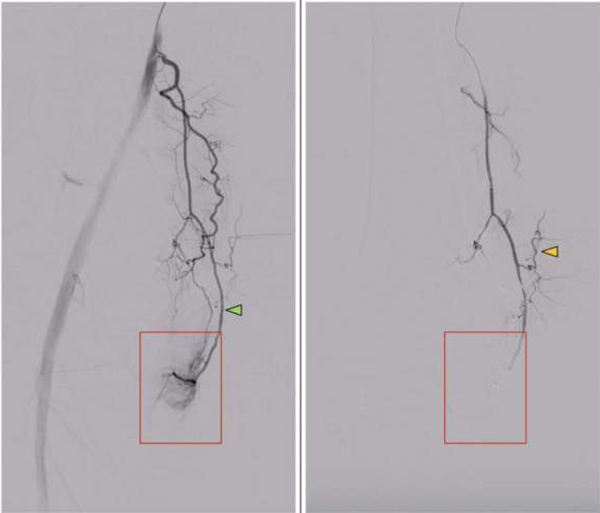 An interventional radiologist injects small particles into selected branches that correspond to the site of knee pain to block blood flow to that area. Embolization of the abnormal blood vessels helps to disrupt the cycle of inflammation, cartilage destruction and sensory nerve growth that characterizes osteoarthritis.