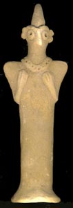 Statuettes have been found in large numbers representing her as naked with her arms folded across her breast or holding a child. The art thus reflects the popular conceptions formed of the goddess. Together with Sin, the Moon god, and Shamash, the Sun god, she is the third figure in a triad personifying the three great forces of nature - Moon, Sun and Earth, as the life-force. The doctrine involved illustrate, the tendency of the Babylonian priests to centralize the manifestations of divine power in the universe, just as the triad Anu, Bel and ha - the heavens, the earth and the watery deep - form another illustration of this same tendency.