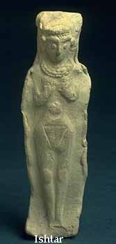 A later, Babylonian form of the Sumerian Inanna, but also identified with Asherah and Astarte. Like Inanna, she loved a dying and reborn vegetation god (Tammuz), whom she descended into the underworld in rescue of after his death. There, she supplicates herself before the queen of the Underworld, Erishkegal (no doubt, the death form of herself). Her emblems were the moon and the morning and evening stars (the planet Venus).