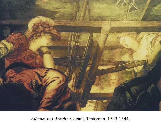 In Ovid's telling, Athena took pity on Arachne who was changed into a spider. The story suggests that the origin of weaving lay in imitation of spiders and that it was considered to have been perfected first in Asia Minor.