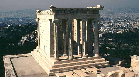 Athena is an armed warrior goddess, and appears in Greek mythology as a helper of many heroes, including Heracles, Jason, and Odysseus. In classical myth she never had a consort or lover, and thus was often known as Athena Parthenos ("Athena the virgin"), hence her most famous temple, the Parthenon, on the Acropolis in Athens. In a remnant of archaic myth, she was the mother of Erichthonius by an attempted rape, which failed.