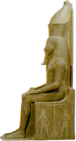 In the Heliopolitan creation myth established in the sixth dynasty, he was considered to be the first god, having created himself, sitting on a mound (benben) (or identified with the mound itself), from the primordial waters (Nu). Early myths state that Atum created the god Shu and goddess Tefnut from spitting or from his semen by masturbation in the city of Annu (the Egyptian name for Heliopolis), a belief strongly associated with Atum's nature as a hermaphrodite (hence his name meaning completeness).
