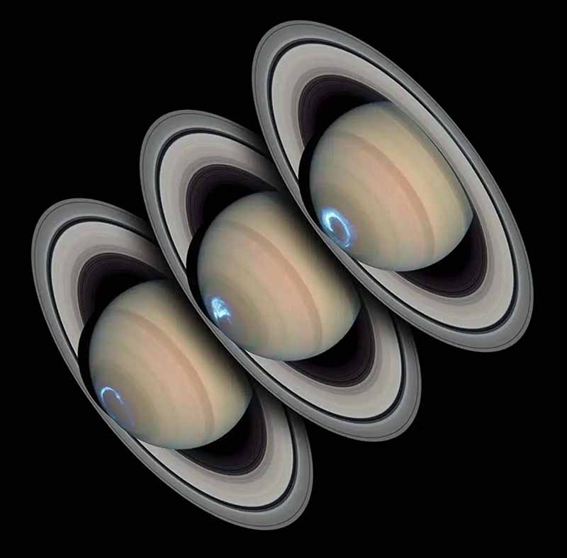 On Saturn, the strongest auroras are in the UV and infrared bands of the color spectrum and so would not be visible to the human eye. But weaker (and rarer) pink and purple auroras have also been spotted.