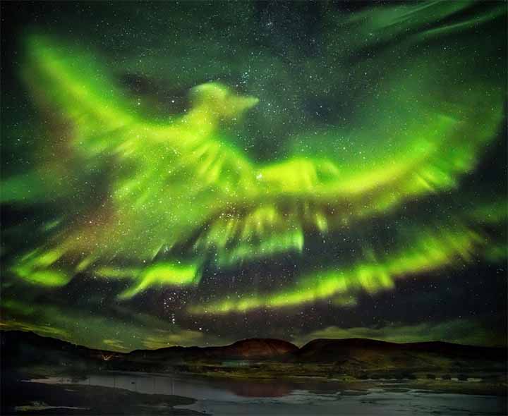 While a striking notion, there is not a vast body of evidence in the Old Norse literature giving this interpretation, or even much reference to auroras. Although auroral activity is common over Scandinavia and Iceland today, it is possible that the Magnetic North Pole was considerably farther away from this region during the relevant period of Norse mythology. Today, the Northern Lights are visible in Iceland from September to April.