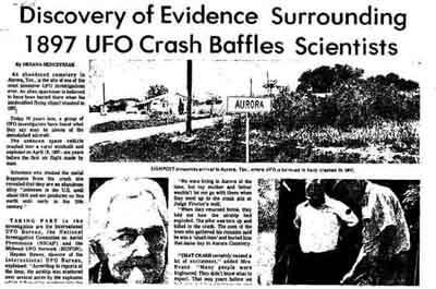 The Aurora, Texas UFO Incident is quite fascinating and speaks of the crash of something and the burial of a mall body the six of a child, in the cemetery of this small town. There we find the story of a local cemetery that once claimed to hold a body from an 1897 UFO crash. This happened six or seven years before the Wright Brothers' first flight when numerous sightings of one or more cigar-shaped mystery airships were reported across the United States.