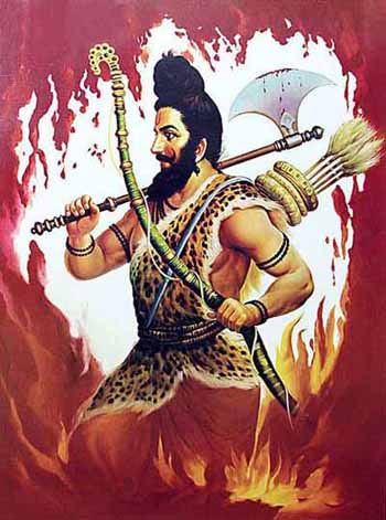 Parashurama, Rama with the axe, appeared in the Treta Yuga. Parashurama a Brahmin, the sixth avatar of Vishnu, belongs to the Treta yuga, and is the son of Jamadagni and Renuka. Parashu means axe, hence his name literally means Rama-of-the-axe. He received an axe after undertaking a terrible penance to please Shiva, from whom he learned the methods of warfare and other skills.