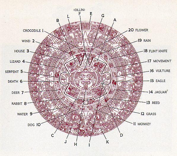 The Mexicans, as all other Meso-Americans, believed in the periodic destruction and re-creation of the world. The "Calendar Stone" in the Museo Nacional de Antropologia (National Museum of Anthropology) in Mexico City depicts in its central panel the date 4 Ollin (movement), on which they anticipated that their current world would be destroyed by earthquake, and within it the dates of previous holocausts: 4 Tiger, 4 Wind, 4 Rain, and 4 Water.