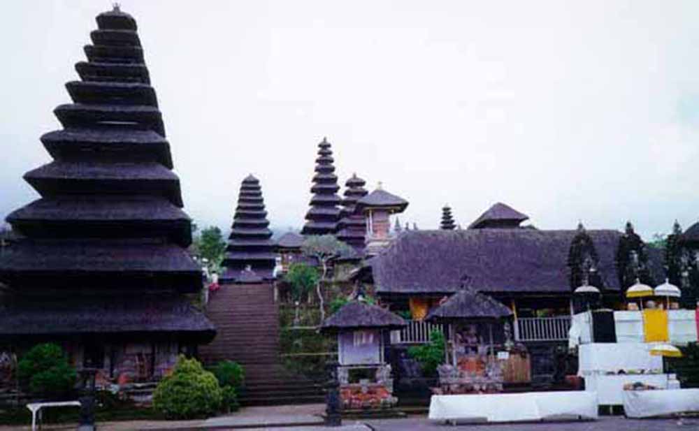 Every village compound has at least three large temples: the Pura Desa, where religious festivals are celebrated, the Pura Dalem for the Goddess of Death (this is the place where the funeral cremation rites start), and the Pura Puseh that is dedicated to the Gods of Heaven. Temples are everywhere, on the mountains and in the valleys, in the ricefields (they are small shrines for the Rice Goddess), and on the seaside, and every temple is different.