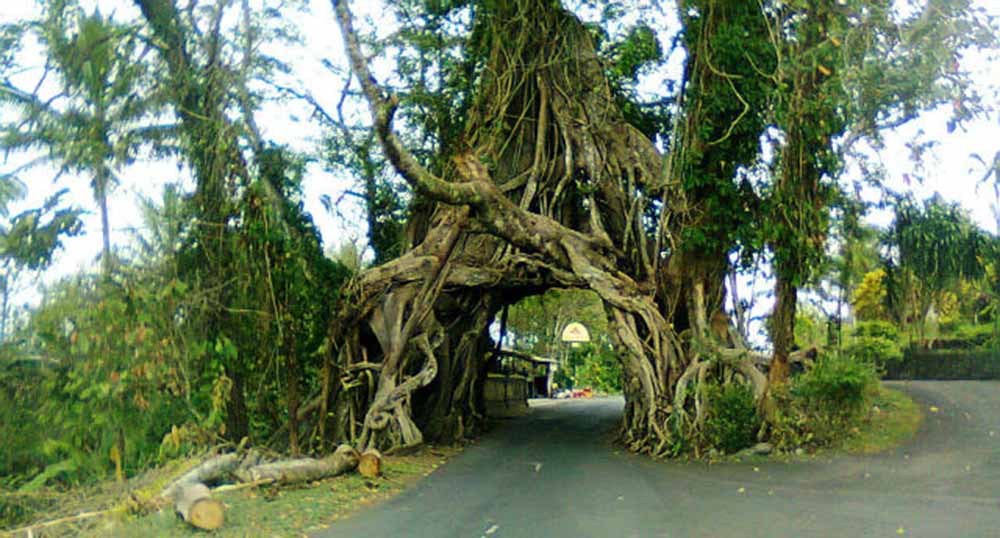 Water flows from the base of the tree into sacred pools after which it is released into the rice fields.