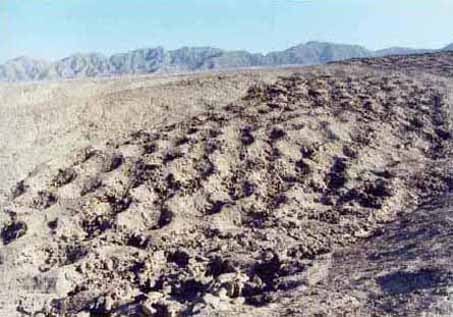 These circular, stone-lined although unused graves lay in rows, seven to nine, and marched up the 50° angle to the slope called Mt. Sierpe, that is the snaking line of graves reminding the one who named it of a serpent. There are over 5,000 such graves; empty, graves in so far as they are circular and stone-lined, and of the same construction of those graves which are found with mummies, weavings and pottery.