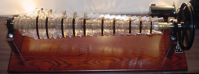 The glass armonica was re-invented by a German glassblower and musician, Gerhard B. Finkenbeiner (1930-1999) in 1984. After thirty years of experimentation, Finkenbeiner's prototype consist of clear glasses and glasses with gold bands. Those with gold bands indicate the equivalent of the black keys on the piano. G. Finkenbeiner Inc., of Waltham, Massachusetts, continues to produce these prototypes.