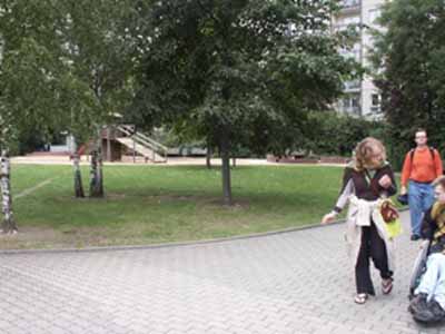 This is a picture of a bench that is situated right on Hitler's bunker (which is currently a children's sandlot).