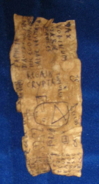 I saw the cup placed over a flame ... then sudden it all came clear ... it was all about alchemy. The symbols on the scroll also speak to me of alchemy, and I was told that it was written in Latin.