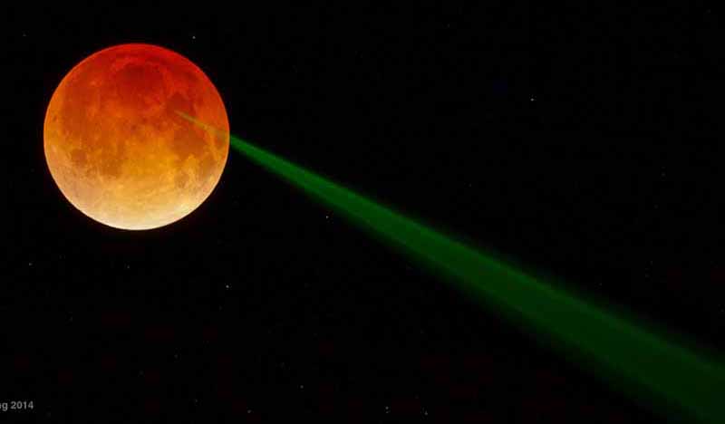 Red Moon, Green Beam NASA - April 18, 2014