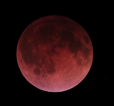 The moon took on an eerie blood-red hue early Tuesday during the first total lunar eclipse of 2014, a celestial sight that wowed potentially millions of stargazers across North and South America. The total lunar eclipse of April 15 lasted about 3.5 hours between late Monday and early Tuesday, with the Earth's shadow slowing darkening the face of the so-called "Blood Moon" in a jaw-dropping sight for stargazers willing to stay up extra late or rise super-early for the event.