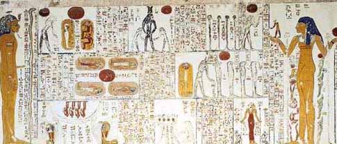 The earliest known version of this work is on the left hand wall of the Osireion in Abydos. It appears in the tomb of Ramesses IV in the Valley of the Kings, replacing the earlier Amduat. This appearance was recorded by Jean Francois Champollion in his letters from Egypt.