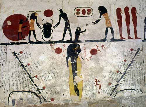 The scenes were found on all of the walls of the tombs of Ramesses VI and Ramesses VII, where a few additional scenes were found on the walls of other royal tombs extending from the New Kingdom to the Late Period.