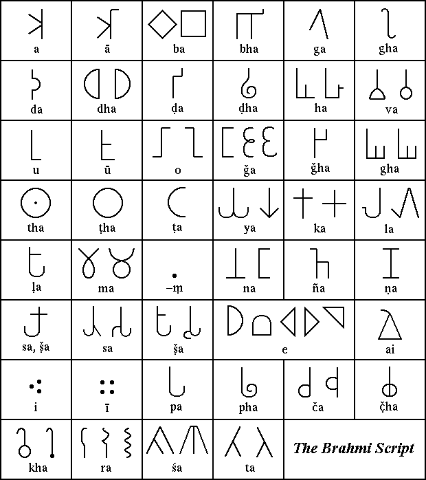 The Brahmi writing system is the modern name given to the oldest script used in India, during the final centuries BCE and the early centuries CE. Like its contemporary in what is now Afghanistan and Pakistan, Kharosthi, Brahmi was an abugida.