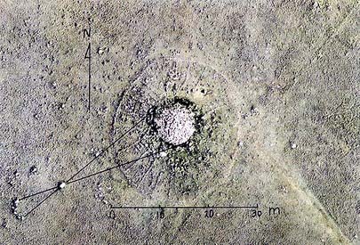 The central cairn is surrounded by 28 radiating stone lines, four of which align with the cardinal points of the compass. Those lines are encircled by another ring of stones.